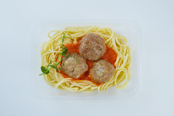 Паста из твердых сортов пшеницы с сочными говяжьими митболами в ароматном томатном соусе с овощами и специями.