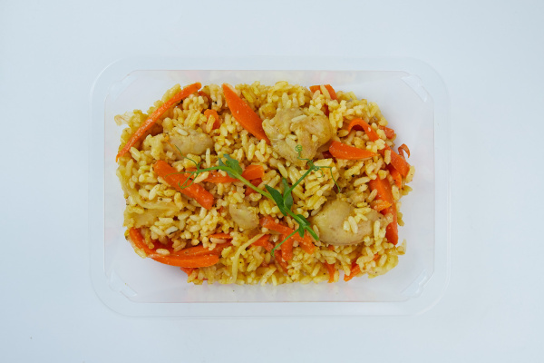 Состав: Курица мякоть, рис, морковь, лук репчатый, масло растительное, соль, специи для мяса