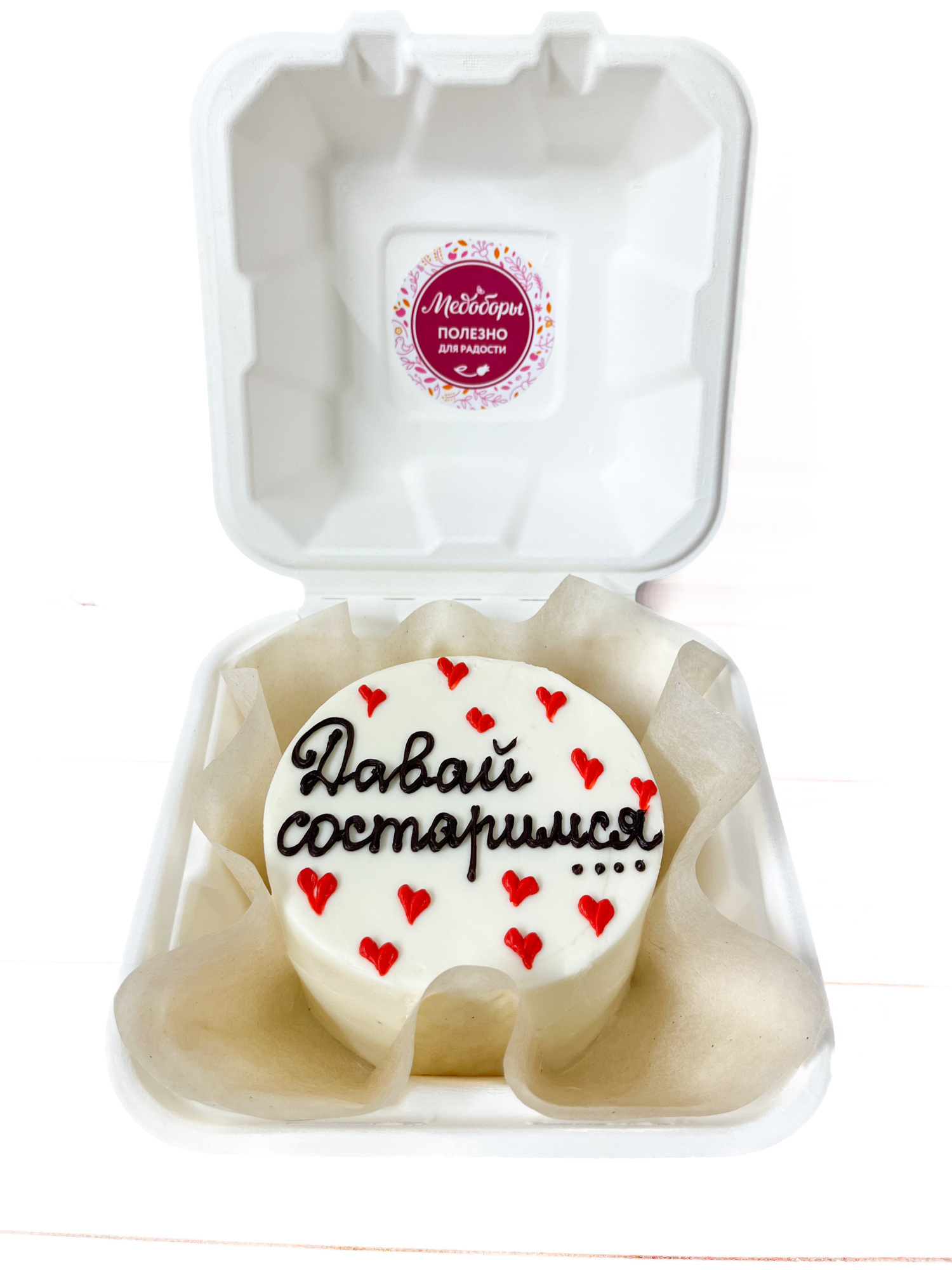 Бенто-торт доступен только при самовывозе. Оформить заказ можно на кассе в любой кондитерской сети  "Медоборы"