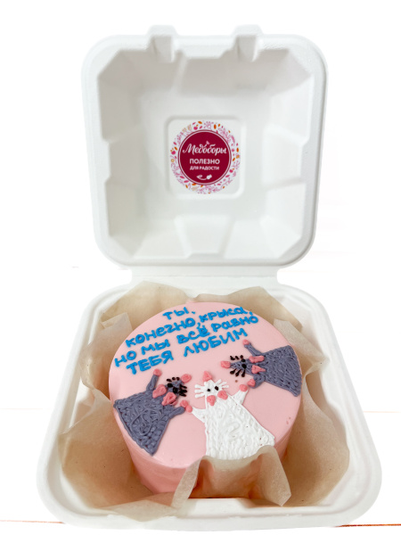 Бенто-торт доступен только при самовывозе. Оформить заказ можно на кассе в любой кондитерской сети "Медоборы"